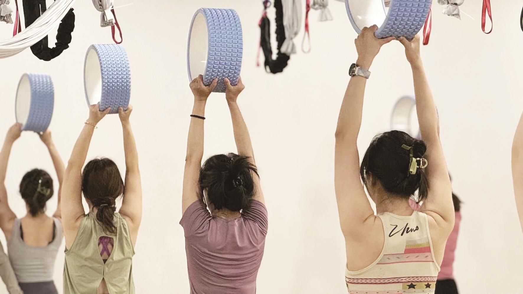 中午时分,瑜伽场馆内暖意融融,舒缓的轻音乐萦绕全场,学员跟随教练舒展身姿、调整呼吸,普拉提、肩颈修复、节后舒缓瑜伽等课程场场约满,午休时段与晚间课表几乎全满。大家换下正装、穿上瑜伽服,舒展肩颈、拉伸腰背,汗水微微浸湿衣衫,脸上却是放松舒展的神情。