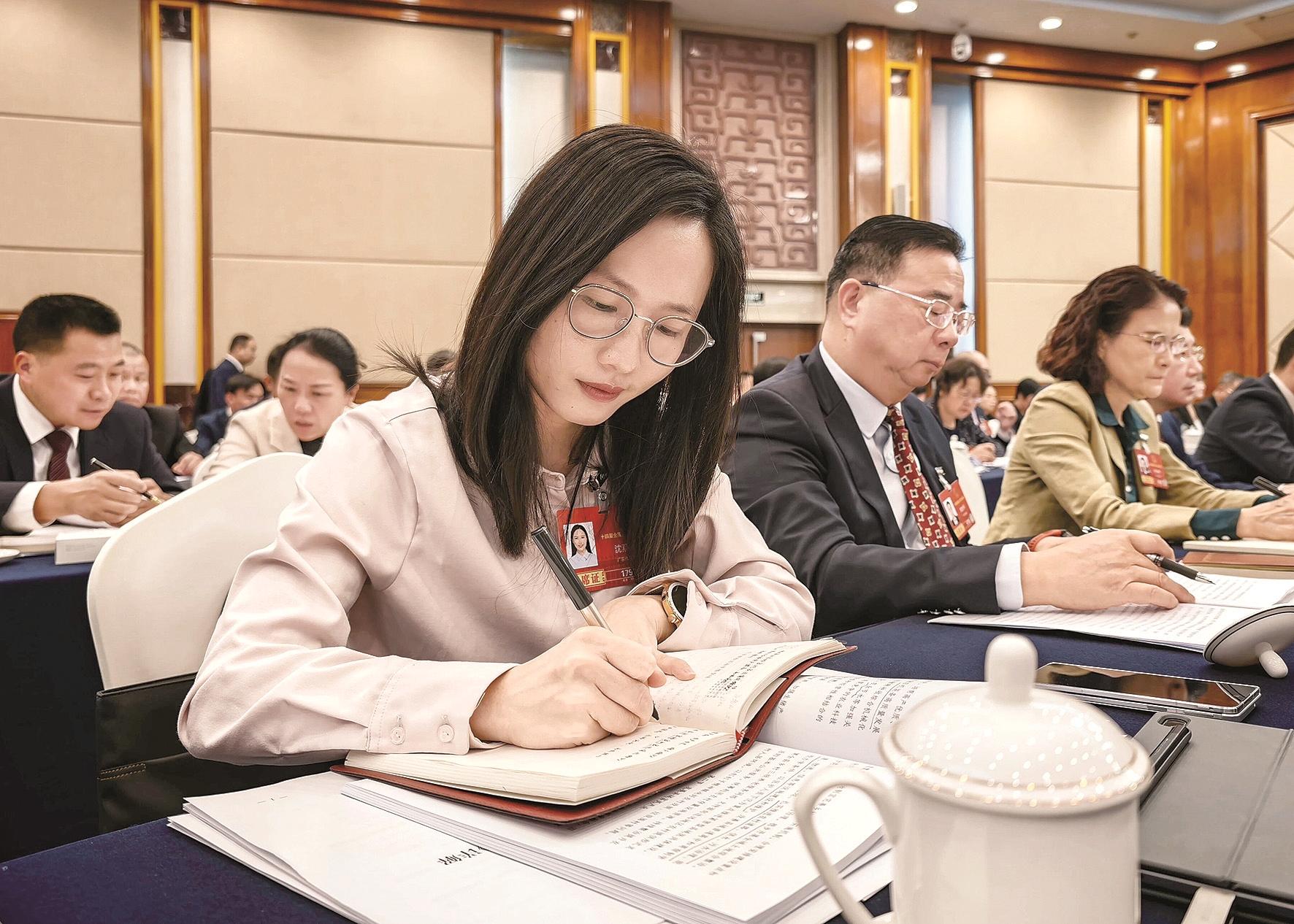 2026年3月6日,十四届全国人大四次会议广东代表团举行开放团组会议。这是沈燕芬代表参会。