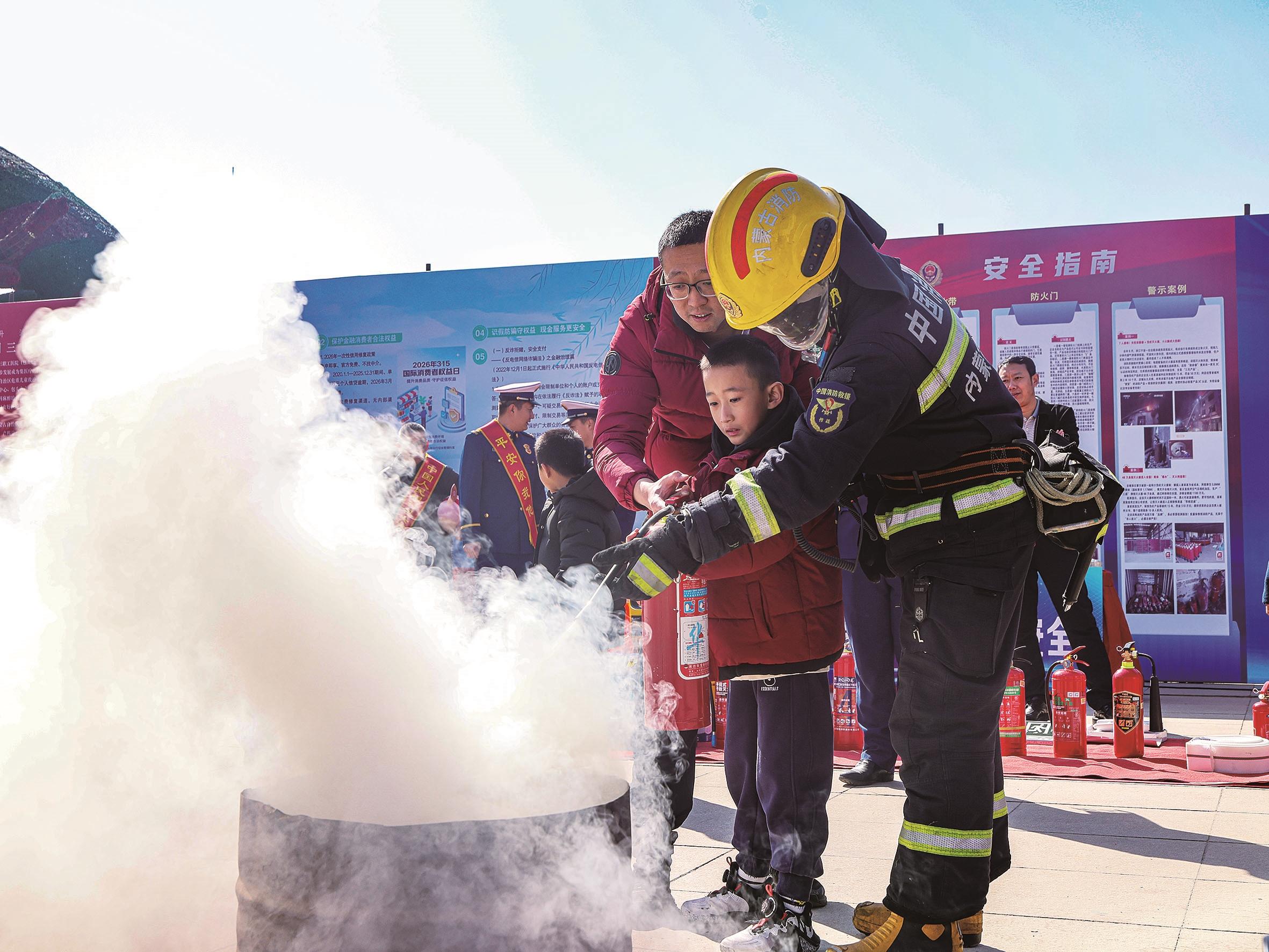 本报讯 3月15日,包头市消防救援支队在阿尔丁广场举办“3·15”消防产品宣传暨真伪辨别主题活动。活动现场设置了实物演示、真假对比、咨询投诉、资料发放四大区域,吸引了众多市民驻足。