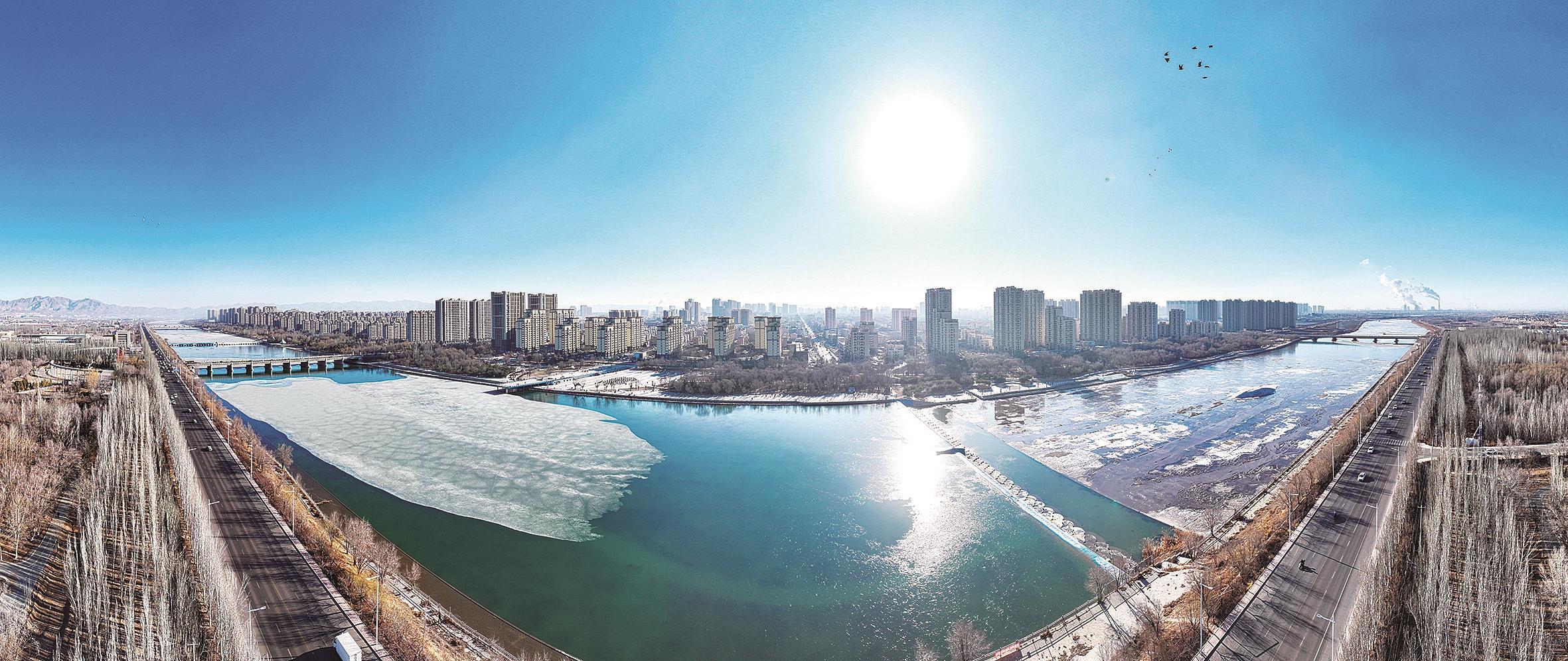3月18日,春光明媚,昆河冰雪消融,湛蓝的天空中,鸽群翱翔。远山近水,城景相融,勾勒出一幅优美、宜居的春日城市画卷。 记者 李强 摄