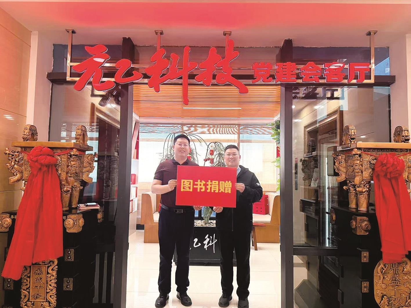 本报讯 为深化新兴领域党建工作,丰富非公企业职工精神文化生活,近日,青山区万青路街道党工委走进辖区内蒙古元乙科技有限公司,开展“党建引领·书香润企”图书捐赠活动,以书香传递组织关怀,为企业高质量发展注入文化动能。
