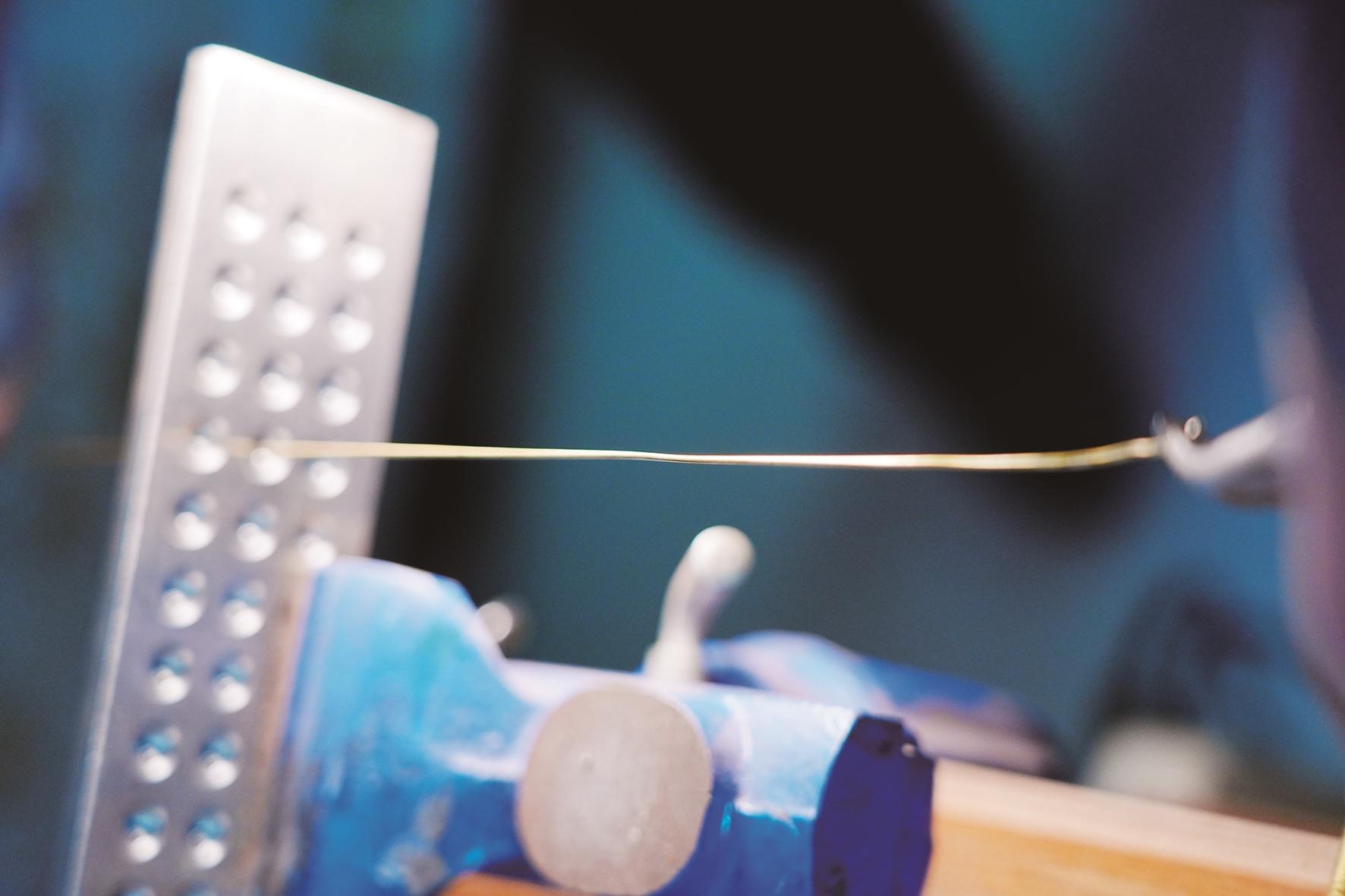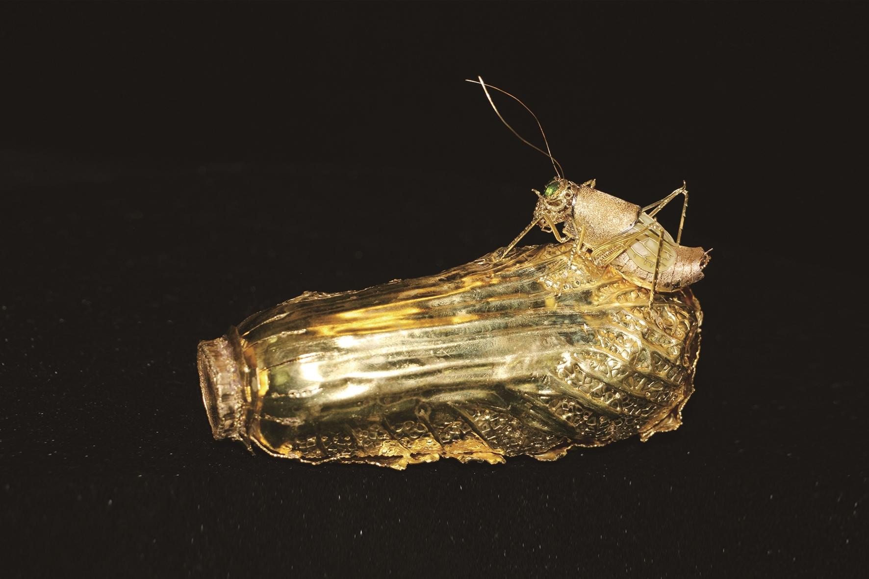 “这门手艺就得做‘苦行僧’,急功近利根本出不了精品。”三十年坚守之路,贵金属原料的高昂成本、动辄一年半载的创作周期,从未动摇过何军的初心。常年低头创作让他患上严重的肩周炎,有时抬手都备感艰难,他却依旧对每一件作品都精益求精。这份执着,终于换来了丰硕的成果:2009年,作品《金佛塔》斩获省级大奖;2025年,代表作《知己》以细过发丝的银丝焊接蝉翼惊艳同行,被中国工艺美术馆永久收藏。
