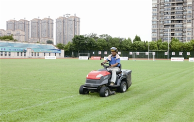 8月,备受期待的“靖江城市足球赛”精彩来袭,16支靖江本地球队轮番上场,上演精彩对决。昨天,体育中心工作人员维护草坪,为“靖超”添彩。