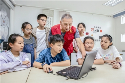 靖江市2025网上夏令营活动正在火热进行中,我市各地纷纷组织青少年学生积极参与读书征文、绘画书法作品展示、网络知识竞答、寻访体验打卡等活动,引导青少年厚植爱国情怀,丰富假期生活。图为8月7日下午,滨江新区办事处江阳社区关工委志愿者正在指导社区孩子们参与网上知识竞答。盛义摄
