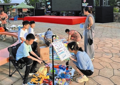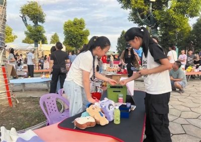 跳蚤市场的热闹氛围远不止摊位间。活动现场还设有美食摊位,香气四溢的特色小吃让人流连忘返;漆扇绘制、中药香囊制作等非物质文化遗产体验区,则吸引了许多亲子家庭驻足。孩子们用毛笔在漆扇上描绘花鸟山水,在香囊中填入芳香草药,不仅感受到传统工艺的魅力,也在亲手创作中收获成就感。入夜后,一场激烈的“靖超”足球赛将整个江滩点燃,孩子们走进赛场,欢呼助威,体验足球运动的激情。财富实践、文化传承、体育热情,为这场别具特色的假期活动画上句号。