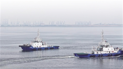 8月13日,由4艘纯电动港作拖轮组成的“绿色舰队”在中船天津码头鸣笛启航。据了解,这4艘拖轮组成了目前中国北方规模最大的纯电动拖轮船队,将主要用于在天津港水域协助各类船舶进出港和靠离码头作业。相较于传统燃油拖轮,电动拖轮能够实现零废气排放、低噪音运行。图为纯电动港作拖轮在水面航行。新华社发