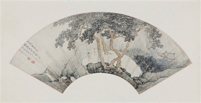 这一点在具体作品中有着生动体现:春游踏青、曲水流觞等活动自古以来就是文人雅士的文化活动,同时也成为扇面的主题,如明蓝瑛《摹黄鹤山樵山水图》扇页、清张崟《松荫话旧图》扇页等。夏山苍翠、吟诗作画成为文人消夏活动,如清恽寿平《梧桐庭院图》扇页等。