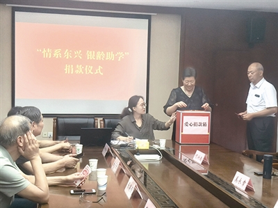 8月12日上午,东兴镇老年协会、关工委在东兴镇政府会议室内联合举办“情系东兴,银龄助学”捐款活动。20多名老干部、老党员、老同志汇聚一堂,以拳拳银发之心,筹资5000多元,为东兴2名患病及家庭困难孩子铺就求学之路。(陆金礼)