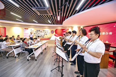 8月19日,滨江新区办事处朝阳社区关工委开展“红色记忆,青春传承”主题活动,志愿者以歌曲、舞蹈等节目,引导社区青少年树立正确的价值观和历史观,让红色基因和革命薪火代代传承。图为活动现场。