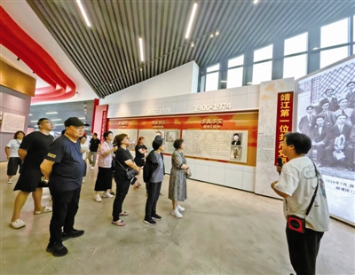 图为上海游客在参观红色东进纪念馆。蒋文洁摄