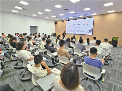 10月5日下午,“聊聊青少年需要读的几‘本’书”主题讲座在市图书馆总馆举行,吸引百余名学生和家长参加。讲座中,省靖中语文教师荣雪飞围绕“人物传记 追随榜样”“散文随笔 热爱生活”“哲学读本 叩问人生”三个方面,讲述如何通过阅读提升学识、人文素养乃至思想境界,为学生和家长带来一场内容丰富、实用性强的高质量阅读指导。