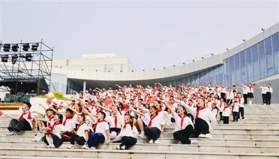 10月1日,伴随着歌曲《我和我的祖国》悠扬响起,百名青少年学生来到长江文化中心市民广场,以快闪诠释青春的活力与炽热的深情,向祖国母亲献上最真挚的祝福。