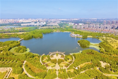 秋意渐浓,牧城公园内林木色彩斑斓,与静谧的水面相映成趣。