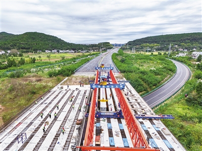 10月12日,由中铁五局承建的京昆高速广元至绵阳段扩容工程牛头河大桥完成最后一片T梁架设,标志绵阳段完成全部架梁,为全线建成通车奠定坚实基础。京昆高速广元至绵阳段扩容工程建成后,将使贯穿川陕的骨干公路流量进一步提升,使其成为成渝地区乃至我国西南地区通往华中华北、京津冀的又一条快捷通道。图为10月12日拍摄的牛头河大桥架梁作业现场。新华社发