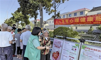 与此同时,卫生室外的宣传活动也同样引人注目。科普展板前,不少村民驻足浏览。展板内容聚焦于抑郁症等常见心理问题,清晰地列出了核心症状、识别方法以及寻求专业帮助的途径。防保所成员们耐心地为围观村民进行讲解,打破大家对心理问题的误解与偏见,传递出“心理感冒”也需及时医治的科学理念。