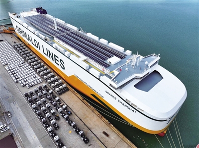 中国汽车工业协会10月14日发布数据显示,2025年前9个月,我国新能源汽车产销量双双突破千万辆,同比增幅均超过30%,彰显汽车产业蓬勃活力。图为10月14日,在江苏省连云港港东方港务分公司码头,滚装轮装载汽车准备外运。??新华社发