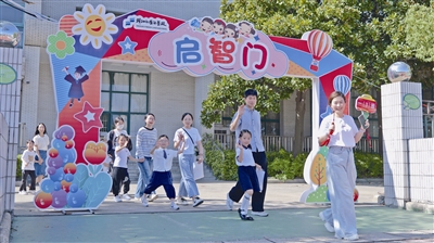 城北小学为一年级新生举办了一场别开生面的“蒙童启智 快乐成长”入学仪式。