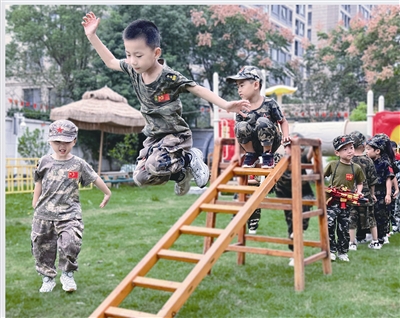 连日来,靖江多所幼儿园组织红色教育活动,引领幼儿怀揣对英雄的崇敬和对祖国的热爱,在“重走长征路”、演绎抗战小故事、“小兵集合,强国有我”等丰富多彩的活动中传承红色基因,歌颂伟大祖国。 (融媒记者葛芸 通讯员赵娟)