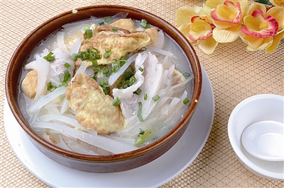 食材:白萝卜300克、鸡蛋2个、姜3片、大葱1根、盐、白胡椒粉等。