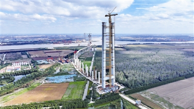 张靖皋长江大桥南航道桥北主塔向上冲刺