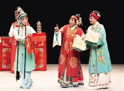 图为演员在表演锡剧《珍珠塔》。新华社发