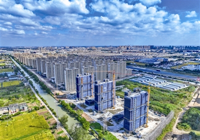江阴—靖江工业园区六圩新安置区项目建设现场一片繁忙景象。目前,一期工程正在办理综合验收和竣工备案;二期已进入室外道路和景观工程施工阶段;三期3栋楼主体已经封顶,即将进入内部施工。 盛义摄