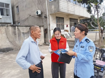 图为广陵村“全民防范电信诈骗”宣传走访活动。