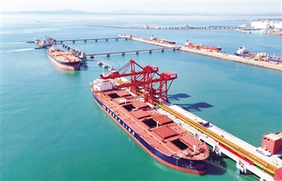 图为10月27日在山东青岛拍摄的山东港口青岛港第二座40万吨矿石码头(无人机照片)。