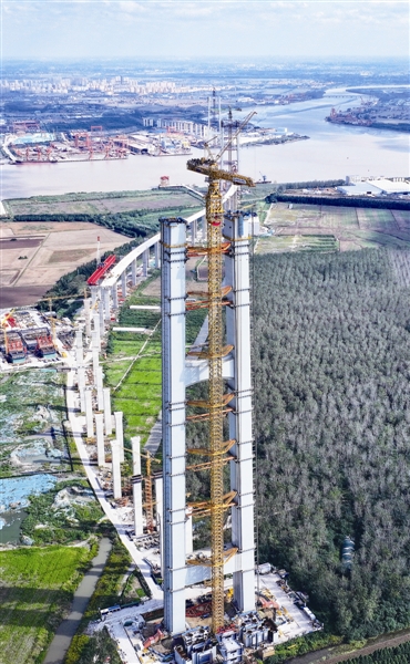图为正在“拔节生长”的张靖皋长江大桥南航道桥北主塔。朱其摄