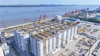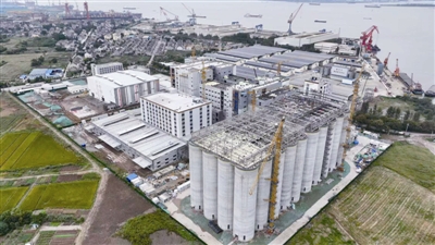 该项目陆域筒仓土建工程及设备安装基本完成,正在开展码头水域升级改造工程及相关配套设施建设。