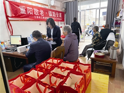 近日,江苏长江商业银行靖江人民路支行依托各农村普惠金融服务站点,为村居老人送上重阳节日祝福的同时,也让长江行服务的暖流汇入乡村院落。