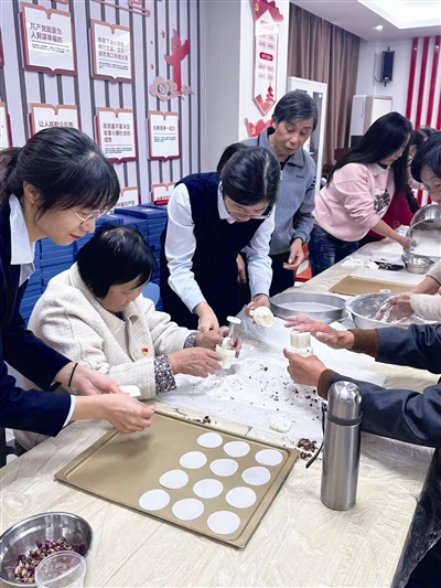 党员志愿者们聚焦老年人高发的非法集资风险,结合近期真实诈骗案例,把“高息理财”“养老投资”等骗局的套路拆解得清晰明了,用大家听得懂的“大白话”传授诈骗识别方法,从源头守护“养老钱”安全。现场节日氛围格外浓厚,手工重阳糕互动区格外热闹,大家围坐一起,揉面、撒果料、蒸制,重温传统节日的快乐,还相互交流制作技巧,欢声笑语间满是温馨。