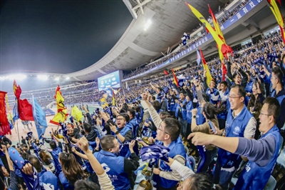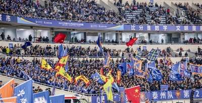 赛场内,靖江百人“岳家军”啦啦队气势如虹,以整齐划一的呐喊为球队注入强劲动力;赛场外,靖江城乡多地同步设置“第二现场”,市民齐聚观赛,随着比赛进程共同欢呼、屏息、沸腾。场内场外,心跳同频、呐喊共振,全城共同见证这一荣耀时刻。