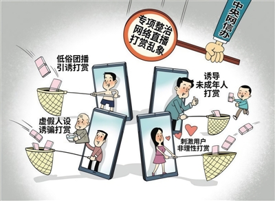 近日,为进一步加强网络直播打赏管理,中央网信办在全国范围内开展为期2个月的“清朗·整治网络直播打赏乱象”专项行动,聚焦娱乐性团播、私域直播等易滋生直播打赏乱象的重点领域,从严打击低俗团播引诱打赏等突出问题,营造良好直播生态。接下来,需多方协同配合行动推进。相关部门要从严惩处违规账号与平台,通过曝光典型案例发挥警示效应;直播平台须细化审核标准,建立健全打赏限额与消费提醒机制,畅通未成年人打赏退款与投诉举报渠道;网络主播应主动规范自身直播行为,杜绝低俗诱导、虚假人设等违规营利手段。从“流量导向”向“内容导向”转型,提升内容质量,构建长效治理机制,才是直播行业长久发展之道。