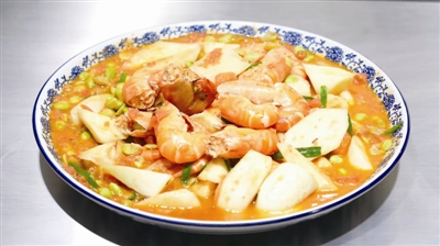 茭白,软嫩中带有一丝鲜美,不仅美味可口,更富含多种维生素、氨基酸、矿物质等营养成分,低热量且高膳食纤维的特点也让它成为减脂期朋友们的理想选择。眼下正是品尝茭白的最佳时机,我市厨艺达人来到市融媒体中心《双鱼厨房》栏目组,教大家制作茭白罗氏虾。这道菜红、白、绿多种颜色交织在一起,看起来非常诱人。大头虾的鲜美加上茭白的鲜嫩爽脆,肉片的嚼劲和毛豆的软糯,整体口感非常丰富。