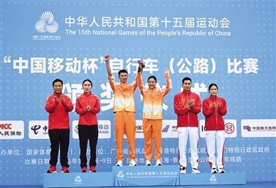新华社珠海11月7日电 第十五届全国运动会公路自行车赛7日在珠海开赛,山东队苗城硕和海南队张好分获男、女子个人计时赛金牌。