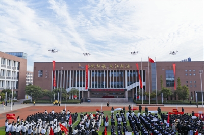 10月22日早晨,省靖中专校扬帆操场上,一场别开生面的开幕式拉开了盛会帷幕。在庄严的国歌声中,4架无人机悬挂着鲜艳的国旗缓缓飞过主席台,科技感与仪式感并存。