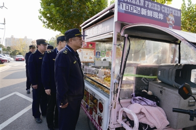 图为执法人员在引导商户规范经营、有序经营。朱佳灏摄
