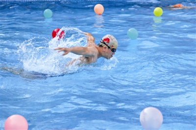11月16日下午,市游泳协会在中天游泳池举行第十九届冬泳运动会。近50名游泳爱好者无惧寒意、“泳”往直前,用拼搏姿态展示蓬勃向上的精神风貌。图为活动现场。马钰超摄