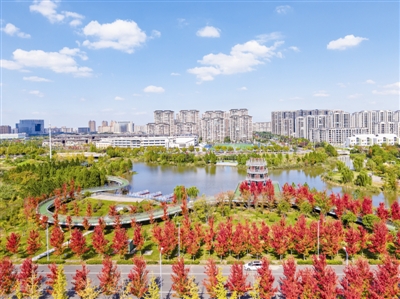 近日,小桥港景观带迎来“枫”景如画的时节。枫树褪去翠绿,换上深红、橙黄的盛装,成为滨江新城一处亮眼的景致。 马钰超摄