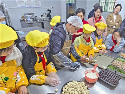 参加活动的季市镇中心小学30多名学生走进季市茵糕店、老汁鸡店、大炉饼店,了解古镇美食的悠久历史和季市小吃的多样性、独特性。大家在师傅的指导下,积极动手制作美食,开心地品尝自己的劳动成果。学生李念说,她将把季市美食传播出去,让更多人爱上她的家乡。