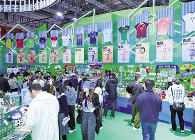 11月20日,第六届长三角国际文化产业博览会在国家会展中心(上海)开幕。本届文博会以“文化赋能经济社会发展,激发文化产业创新创造活力”为主题,展会规模达8万平方米,汇聚超过1500家文化产业相关单位和企业品牌。 上图为11月20日,观众在江苏展区参观苏超文创产品;右图为11月20日在安徽展区拍摄的瞻淇鱼灯表演。新华社发