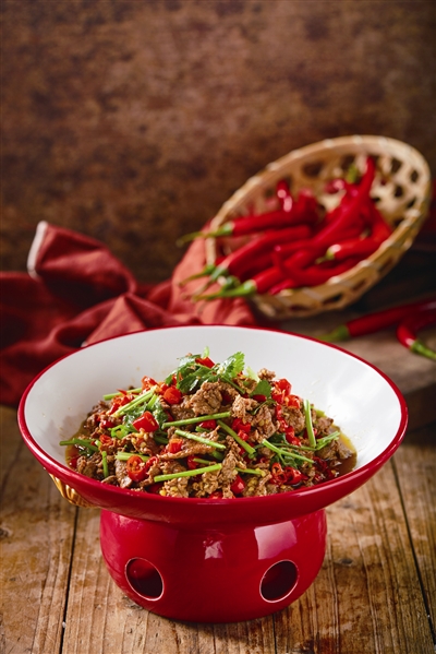 小炒黄牛肉。小炒黄牛肉是辣椒与黄牛肉的碰撞,牛肉的柔软质地使得其容易入味,集鲜、嫩、辣、爽于一身,辣而爽口,鲜而清香。
