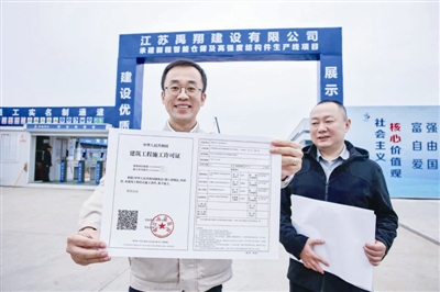 为新程汽车项目送上建筑工程施工许可证。盛义摄