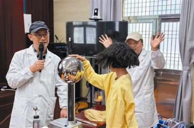 科普人员以趣味实验展示科学现象,将抽象原理转化为可视化体验。“火焰掌”实验让学生直观理解燃烧三要素如何影响火焰呈现;静电实验中,假发模型“瞬变刺猬”与蛋挞壳“悬空旋转”,展现静电作用力的奇妙;烟雾“炮弹”实验演示涡环现象,让学生感受空气流动中的隐藏规律。现场还呈现声光反应、结构力学、干冰升华等多个实验,每一个都引发学生的强烈兴趣。学生在体验中不断提出问题、主动探索,科学的好奇心在互动中被激发。(孙慧)