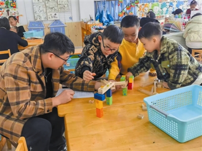 在集体教学活动中,教师通过游戏化教学方式引导学生参与探究。家长旁听并互动,观察孩子在课堂上的表达能力、专注状态及参与程度。区域游戏环节中,家长与孩子共同体验建构、美工、角色扮演、科学实验等活动,进一步理解区域活动的教育价值。