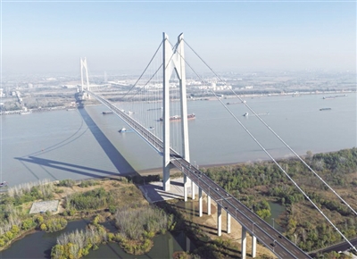 11月26日,南京新生圩长江大桥建成通车。据悉,南京新生圩长江大桥是南京主城连接江北新区的重要枢纽,项目全长约13.17公里,主线设计时速80公里,双向六车道。该桥的通车对提升南京长江干线过江能力、完善区域路网体系具有重要意义。图为11月26日拍摄的南京新生圩长江大桥。 新华社发