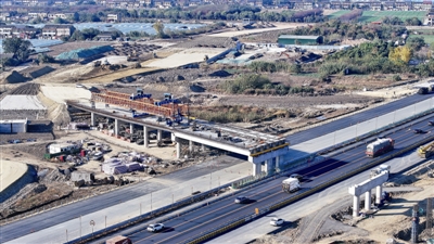 当天下午2点,记者在项目现场看到,经过半年多的攻坚建设,西半幅已初具规模,单向五车道的路基与路面拼宽作业已完成。工人们正紧锣密鼓地进行交安工程和防护设施的施工以及西半幅上跨桥桥面系施工。