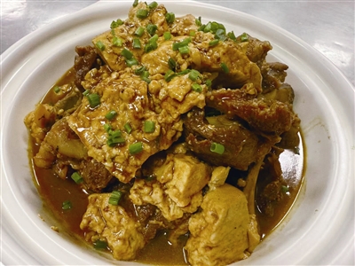 豆腐可与上百种食材搭配,荤菜素菜都能与之结合,是真正的“百搭”。凡到东兴的食客,必点烧豆腐。笔者走访中发现,当地人待客做得最多的一道老豆腐系列菜肴当属老豆腐炖筒骨。老豆腐吸收了筒骨的油腻,骨头上则增添了豆香,两种食材的互相成就,让这道荤菜吃起来也格外清爽。有的人爱吃老豆腐原本的味道,尤其是牙口不好的老人家,最爱戳豆腐。清晨起来,吃上这样一道搭粥菜,一整天都有好心情。
