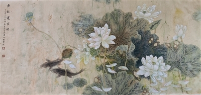 鱼戏莲叶间(国画)